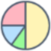 The circular display shows two color mixes: your target color on the right and your current mix on the left. Each sector's size represents that color's proportion in the final mix.